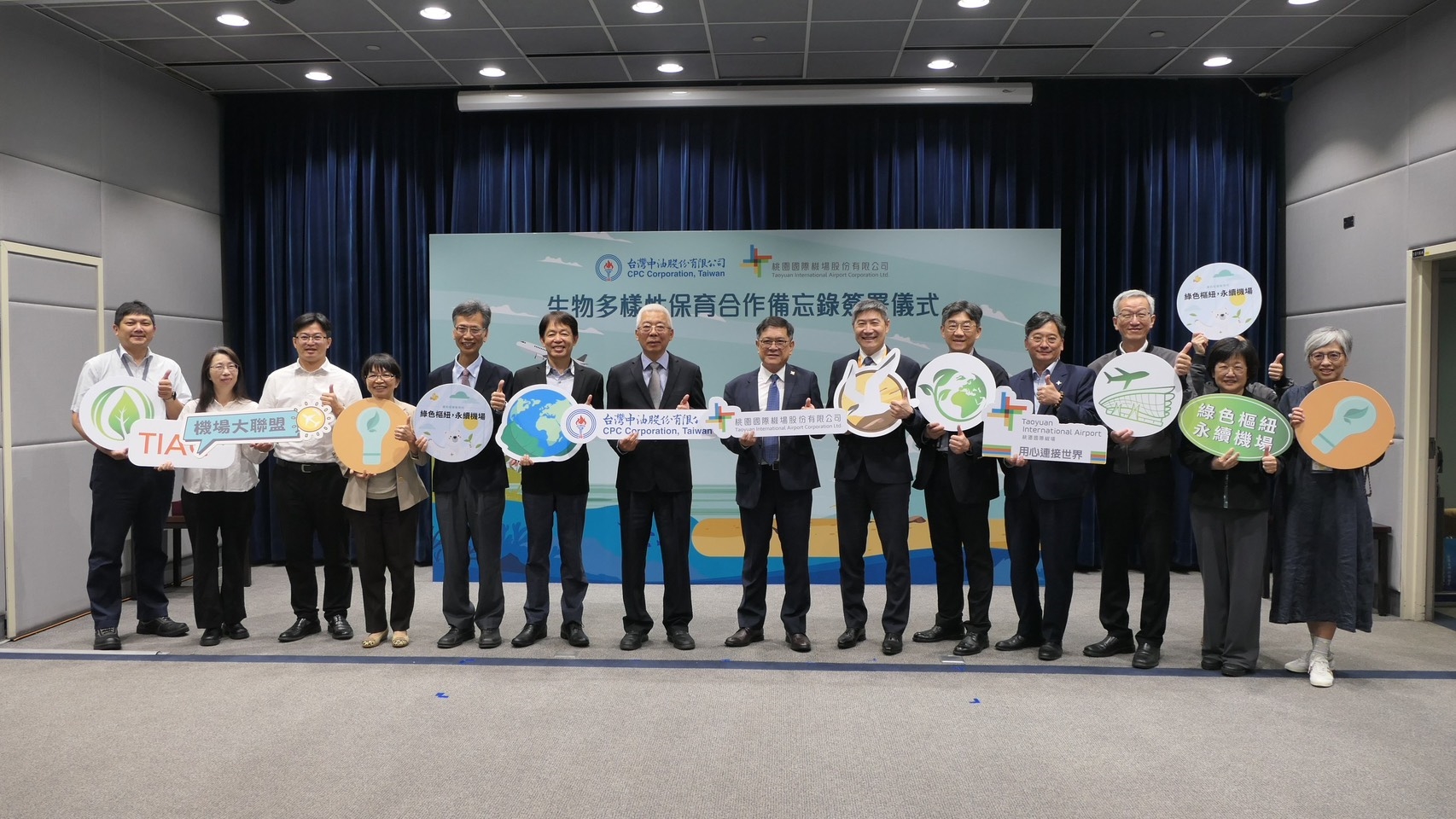台灣中油攜手桃園機場公司簽署備忘錄,跨界推動生物多樣性保育合作。(台灣中油提供)
