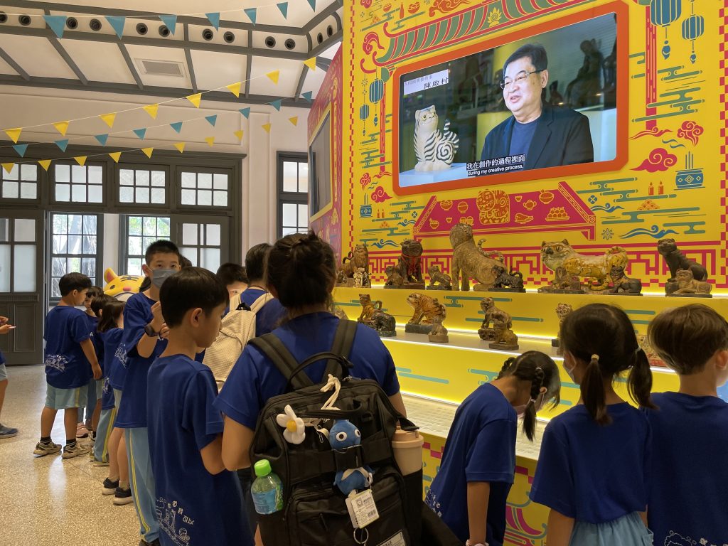 裕文國小資源班學生透過導覽與影像介紹認識台灣傳統工藝與文化創作,從觀察中深化對在地文化的理解與連結。(記者林怡孜攝)
