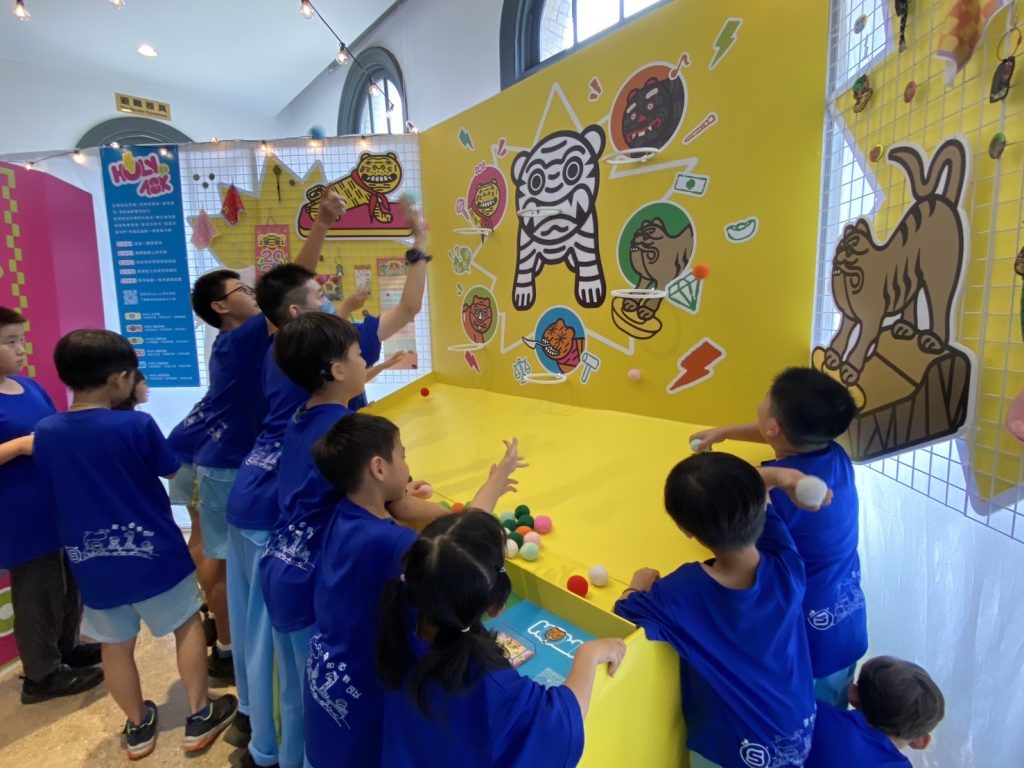 學生參與互動式展區體驗,以遊戲方式認識傳統虎爺文化與民俗意象,培養觀察力與學習興趣。(記者林怡孜攝)