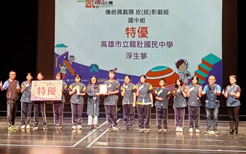 高雄市美濃區龍肚國中皮影戲團參加全國學生創意戲劇比賽,以原創作品「浮生夢」榮獲最高榮譽「特優獎」,締造連續六年蟬聯特優的「六連霸」紀錄,為學校推動傳統藝術教育寫下燦爛新頁。