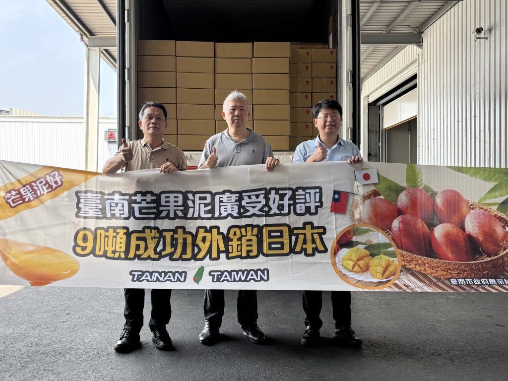 台南市農業局廿一日舉行「冷凍愛文芒果泥封櫃儀式」,以愛文芒果製成九公噸芒果泥外銷日本,再為台南農特產品外銷締造佳績。
