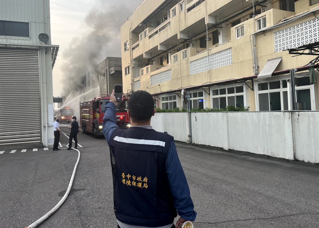 台中市消防局在昨日凌晨一時十八分獲報,位於西屯區工業區三路的統一倉儲發生火警,派遣第六大隊、轄區工業分隊等八個單位,出動各式消防車二十二輛、消防人員四十五人,現場由大隊長蔡孟栩擔任指揮官。