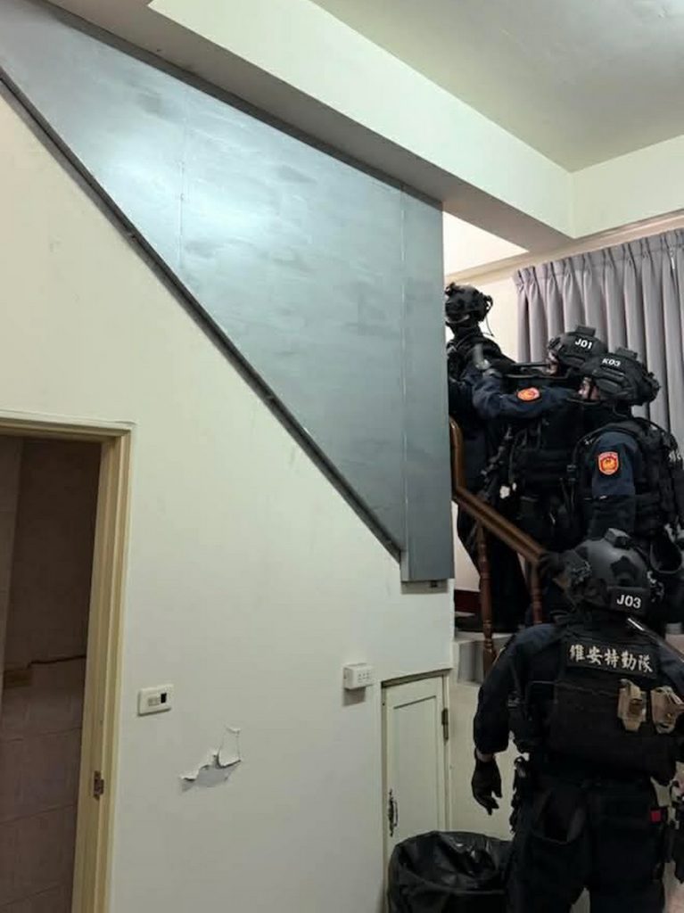 警方攻堅時發現,黃姓主嫌為免遭警方第一時間攻堅查獲,將機房改造成「銅牆鐵壁」,各樓層窗戶內側皆裝上鐵窗,甚至在樓梯間裝設三重大鎖之鐵門,不得任意開啟,增加警方攻堅難度。另外,涉案人在面對警方攻堅時,還將公安制服、打火機丟出陽台,企圖滅證,但全被檢警掌握。