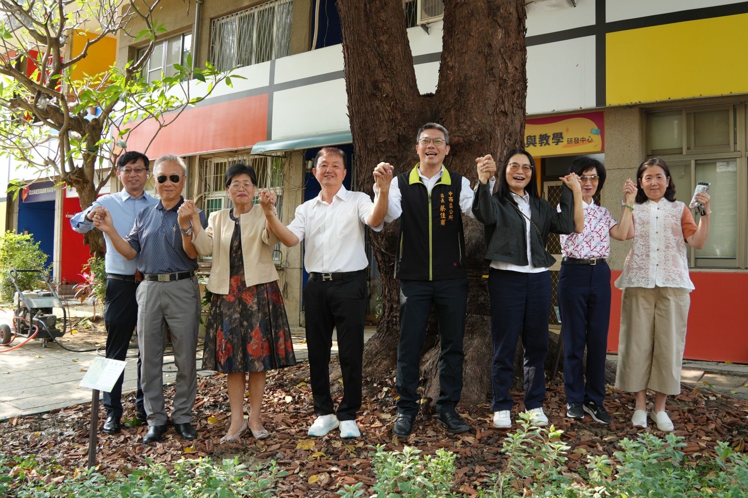 現場由校長陳惠萍與億威實業股份有限公司董事長邱慈意共同揭牌,象徵校園與企業攜手投入環境維護的重要起點;隨後進行「綠意扎根行動」,透過土壤改良實作,為現場樹木補充養分,將永續理念轉化為具體行動,也讓參與者更貼近校園生態的實際運作。