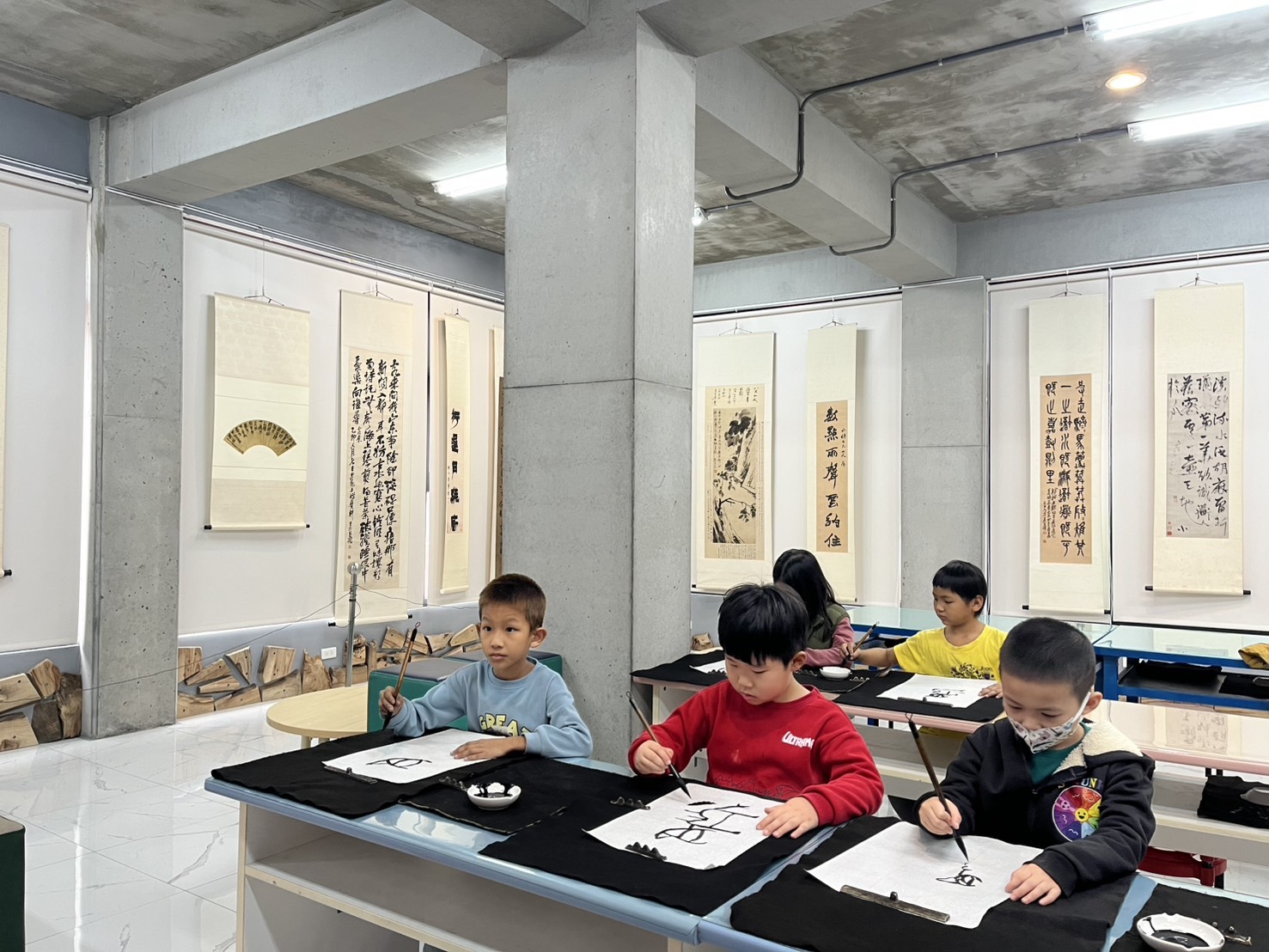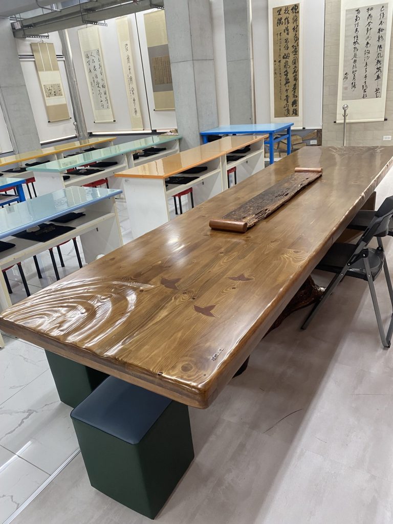 為了讓藝術走進校園,蔡江東與吳明宗執行長慷慨解囊、出錢出力,於教室內設置布展經典書法作品,讓未來到訪的國內外師生皆能親身體驗中華書藝之美。