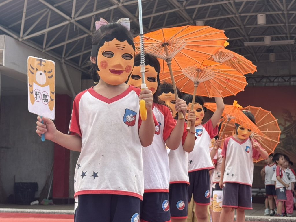 本次活動由在地「聖兒幼兒園」規劃才藝成果發表,動員約250名幼兒參與,歷經一個多月練習,讓孩子們從認識角色、學習步伐到實際演出,完整體驗陣頭文化的內涵。透過「做中學」的方式,小朋友在遊戲與表演中接觸地方信仰,不僅學習肢體節奏,更逐步理解廟宇文化、祭儀意義與社區情感,讓文化記憶得以在幼小心中萌芽。