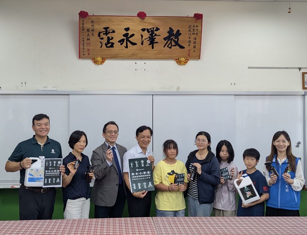 透過木酢達人的專業指導,協助學校將修剪或移除後的廢木材,藉由循環經濟技術轉化為生物炭、木酢液等再利用產品,或製成清潔用品及再生傢俱回饋校園。(竹縣府提供)