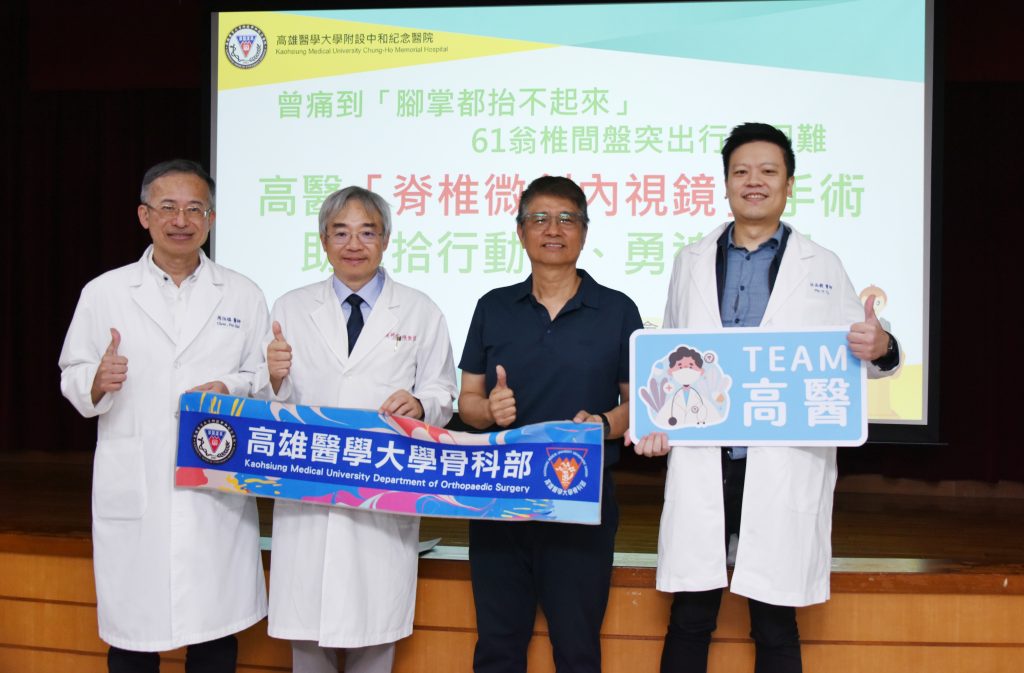 61歲的吳先生,6個月內持續出現嚴重左側坐骨神經疼痛,久站久坐就痛,甚至嚴重到「腳掌抬不起來」,經高醫骨科部小兒暨脊椎骨科診治,發現為巨大游離型椎間盤突出合併足下垂,神經壓迫已達嚴重程度,採用脊椎微創內視鏡手術(IELD)進行治療,住院3日後就順利出院,近期還跟著大甲媽遶境。