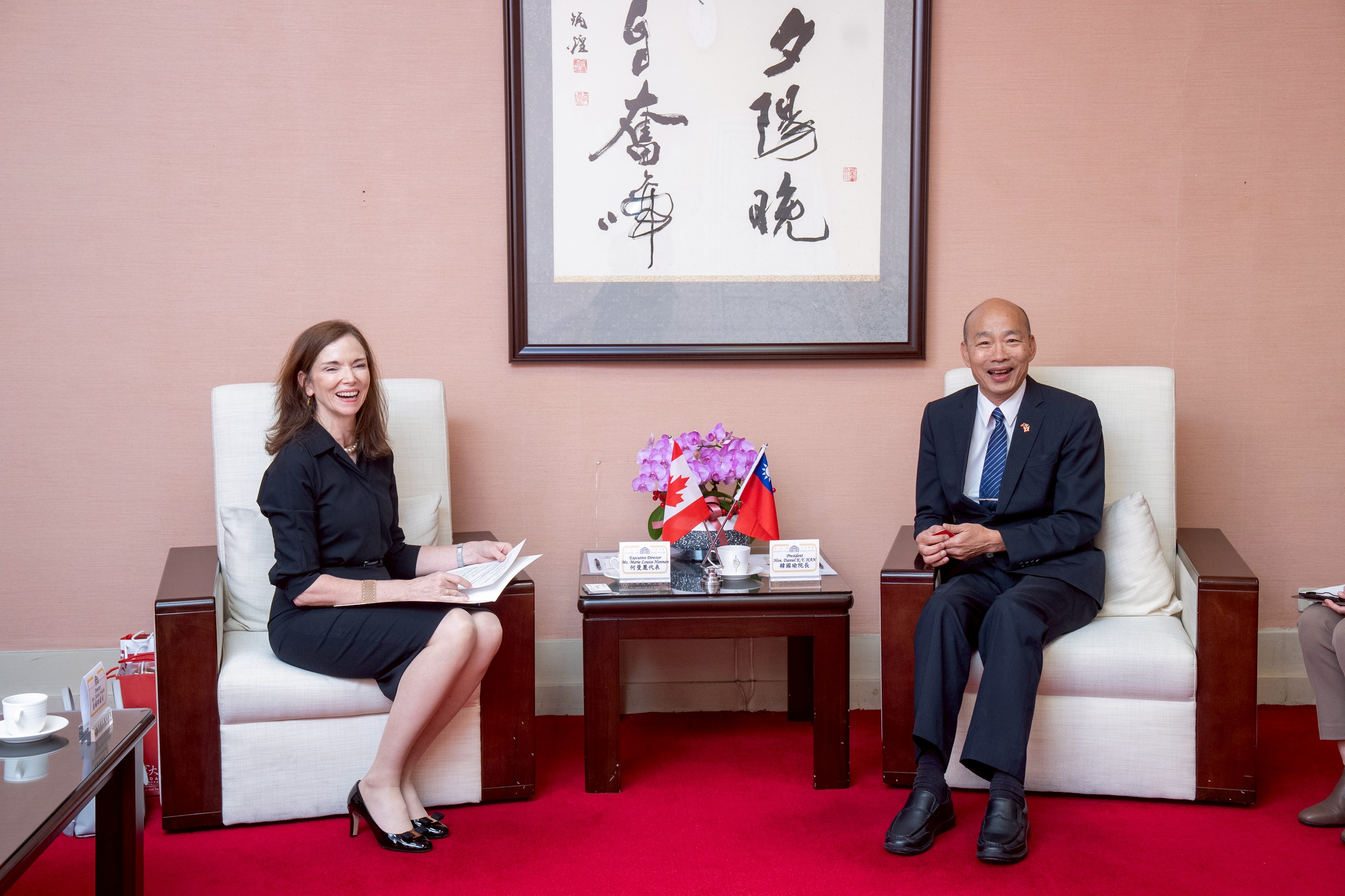 立法院長韓國瑜二十三日表示,台灣與加拿大長期互動良好,未來立法院將在既有基礎上,持續與「加拿大駐台北貿易辦事處」合作,推動雙邊關係深化。韓國瑜當天上午接見該處代表何曼麗一行,雙方就多項議題交換意見。