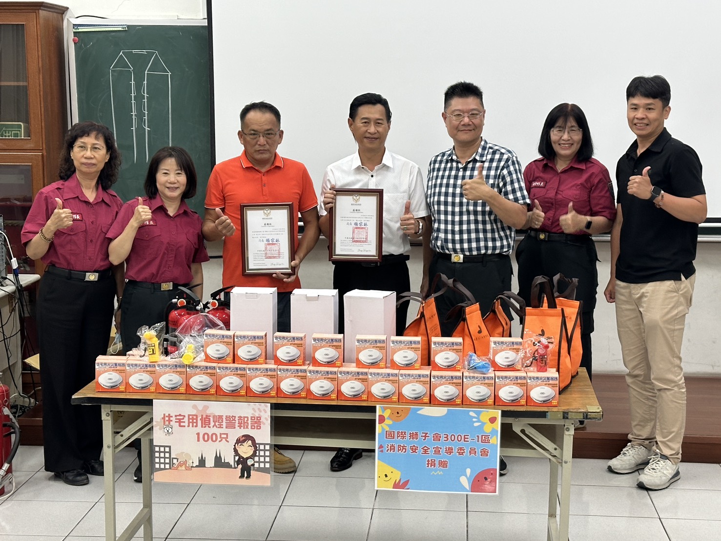 廿三日晚間華威消防代表人唐志浩會同國際獅子會300E-1區消防安全宣導委員會主席陳治華共同捐贈住宅用火災警報器及防火宣導教具一批予南市府消防局,由火災預防科長李昂謙代表受贈,也特別頒發感謝狀感謝二人善行義舉。捐贈住警器後續將由各分隊依登記順序發放給需要民眾,教具也將交由台南義消婦宣隊使用,進一步促進宣導效能。
