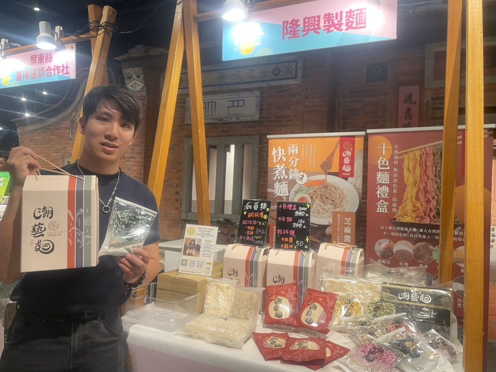 此次前來的屏東農友,隆興製麵第三代接班人何苰稦更以年輕人的創意,對於生產過盛的當令水果,結合其製麵技術,發展成不同口味的手工麵條「潮意麵」,為各產業農友創新附加價值,可說是青農界的最佳代表人物。