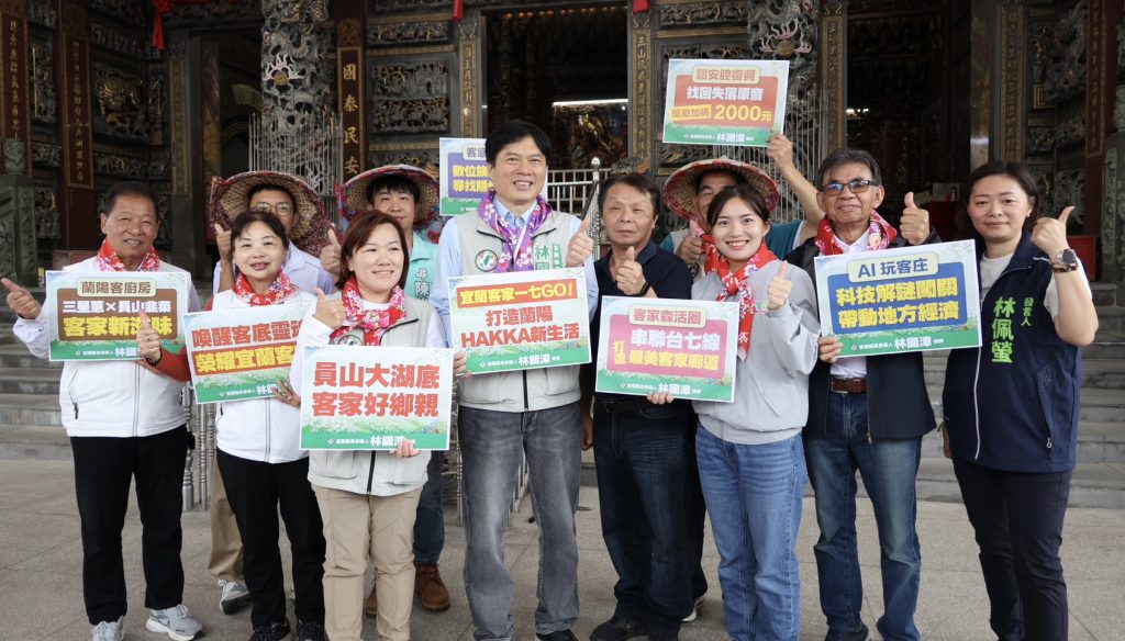 林國漳把握客家桐花祭前夕,前往員山鄉大湖普恩廟,提出「宜蘭客家一七GO!」政見,強調當地約七成居民具客家血緣,應喚醒族群文化認同。他同時提出五大生活提案,包括打造台七線「客家森活廊道」、建置數位族譜、復興詔安腔、發展「HA-FOOD」農產品牌,以及導入AI智慧客庄,盼結合科技與文化帶動地方創生與觀光。