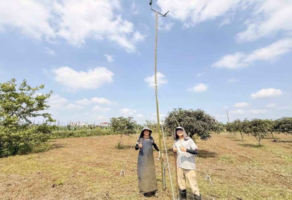 屏東縣農友於田區架設猛禽棲架,採行友善農法,守護草鴞。(記者毛莉翻攝)