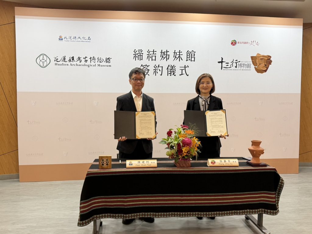 新北市立十三行博物館與花蓮縣考古博物館簽訂合作備忘錄,二十五日由新北市文化局長張䕒育、花蓮縣文化局長陳建村出席締結儀式,互贈具代表性的文物複製品-十三行「人面陶罐」與花蓮考古館「豐田玉夜燈」,象徵跨縣市考古文化交流的里程碑。