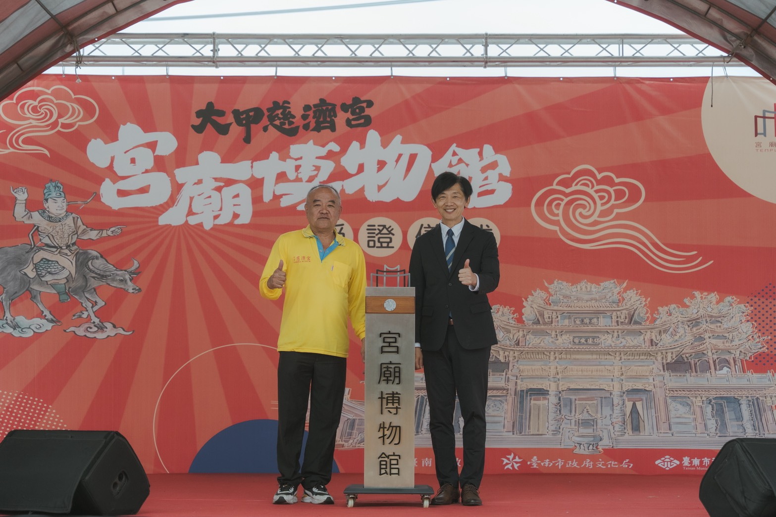 仁德區大甲慈濟宮二十五日獲頒認證,成為全市第九間宮廟博物館。出席授證儀式的副市長葉澤山肯定廟方長期投入傳統工藝保存與文化推廣的成果。