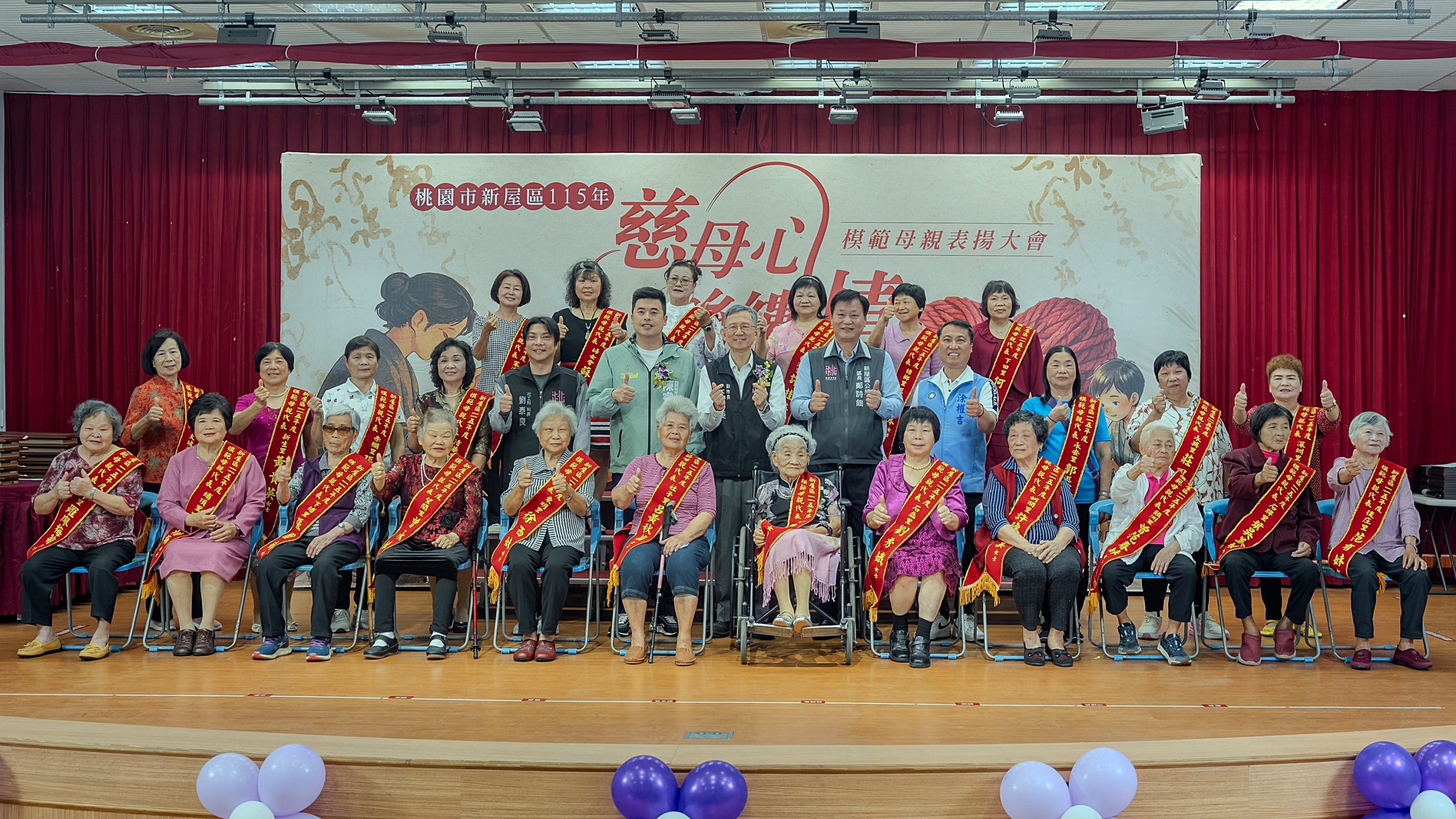 桃園市副市長王明鉅二十六日出席「新屋區公所一一五年模範母親表揚活動」。王明鉅表示,母親節表揚活動是一年一度最溫馨的重要時刻,特別向新屋區二十五位模範母親致上最高敬意,肯定她們長年為家庭無私付出、承擔重任,並見證多位模範母親子孫滿堂、四代同堂的幸福成果,展現家庭傳承與倫理價值的典範。