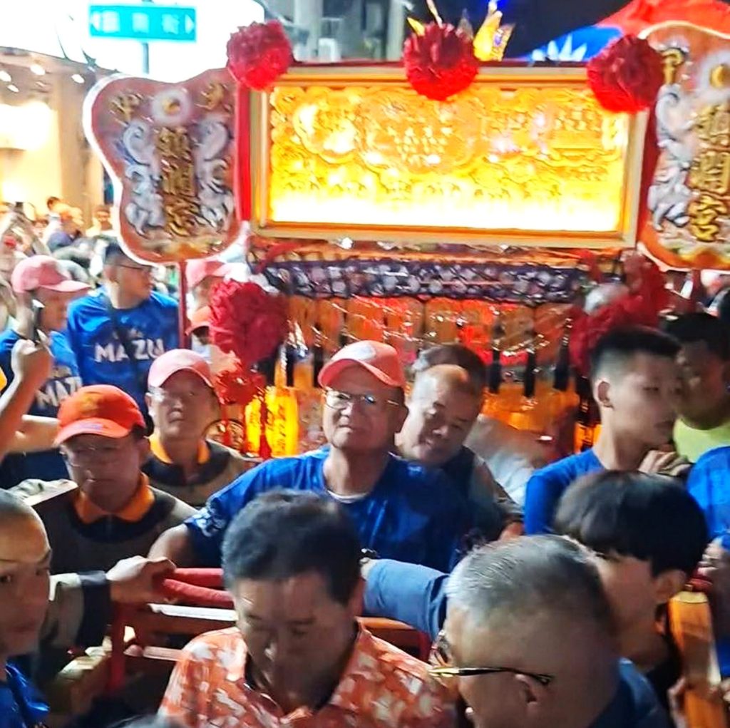 大甲媽鑾轎抵達張清照清水服務處前停留,大批信眾將現場擠得水洩不通,虔誠祈求媽祖保佑,服務處搭棚設小吃攤。