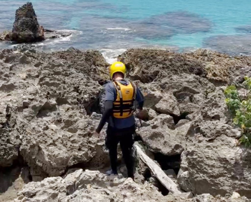 恆春白沙灣驚傳潛水客失蹤,屏縣消防人員於沿岸進行搜索。(記者毛莉翻攝)