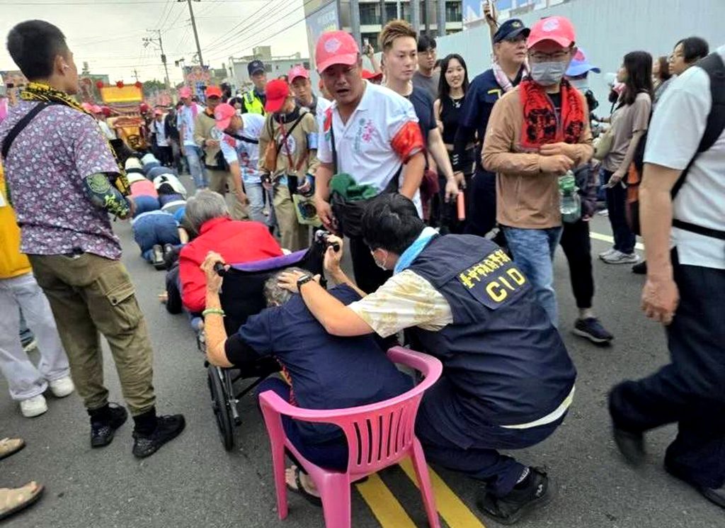 在清水區途中,一名基隆婦人帶著二名子女想躦轎底,其中一名女童坐輪椅,身心障礙,母親特地從基隆到台中,鑽轎底祈求小孩平安,娘傘為女童停留三分鐘,清水警分局員警和民眾在旁協助。
