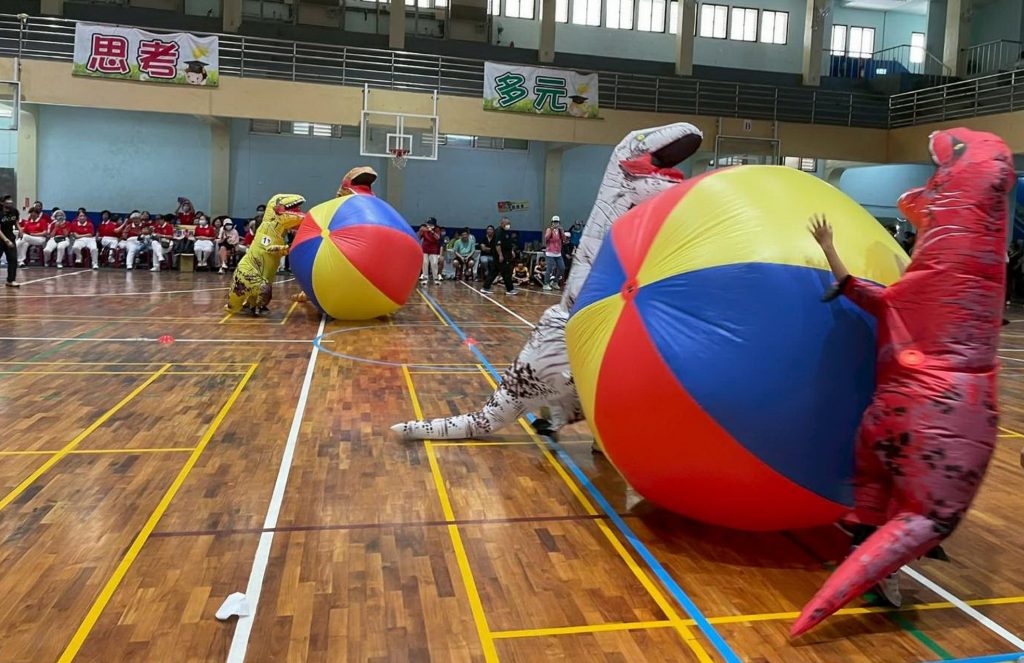 最吸睛的亮點莫過於國際交流!清水區攜手日本熊本縣御船町,導入超人氣的「恐龍們的運動會」,共有四十隻大小恐龍出沒競技,將趣味競賽融入活動中,透過趣味競賽與互動體驗,增添活動趣味性與參與度,不論大小朋友都玩得不亦樂乎。