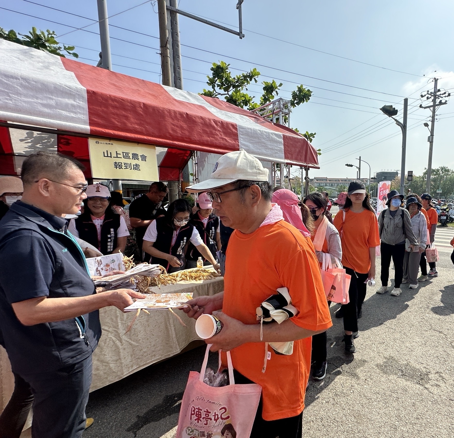 山上區農會二十六日舉辦「新品精緻果酥禮盒及綜合商品提袋行銷暨健走活動」,結合新品鳳梨酥發表,青農展售,吸引千人參加健走,現場氣氛熱絡。