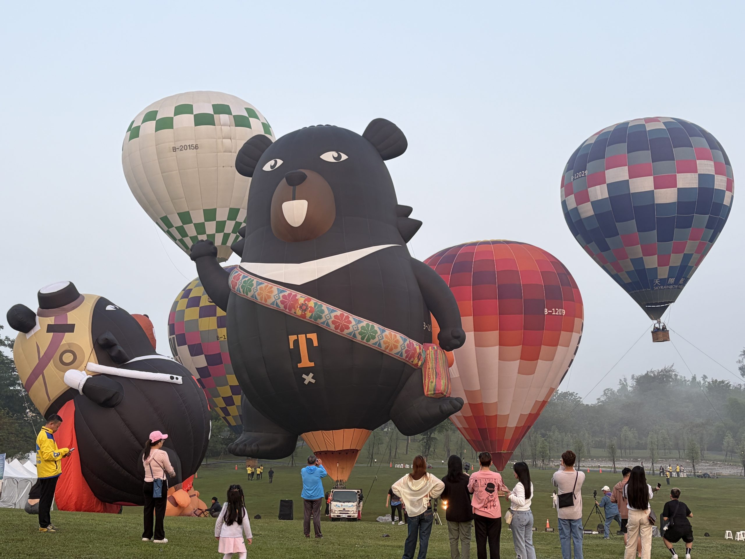 受到鋒面影響,西拉雅森活節重頭戲「熱氣球光雕秀」,延至二十六日晚間登場,儘管天候不理想,仍吸引民眾到場體驗熱氣球繫留,現場各式大小不一的熱氣球也成為拍照熱點。