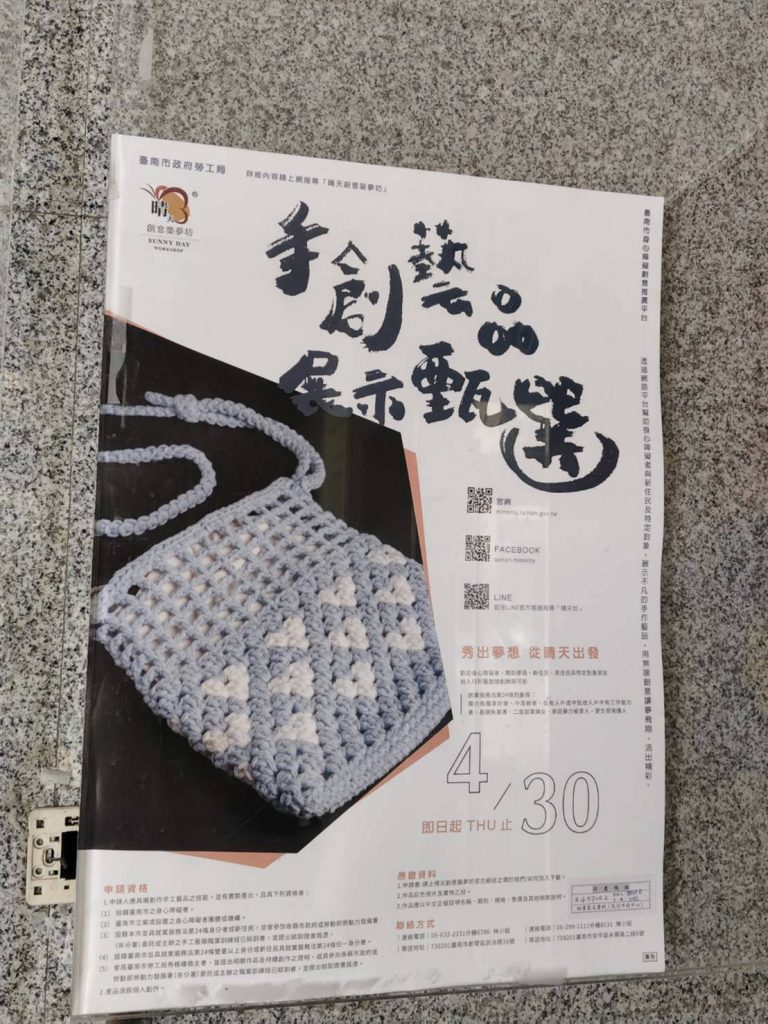 南市勞工局輔導成立的「晴天創意築夢坊」,已協助三百餘位身心障礙及特定對象以手工藝品創業,累計創下超過億元的超夯業績,今年晴天坊上半年度的手創藝品展示徵選受理報名到四月底,目前已進入倒數,熱愛手創藝品想要加入晴天坊行列,趕快把握機會。