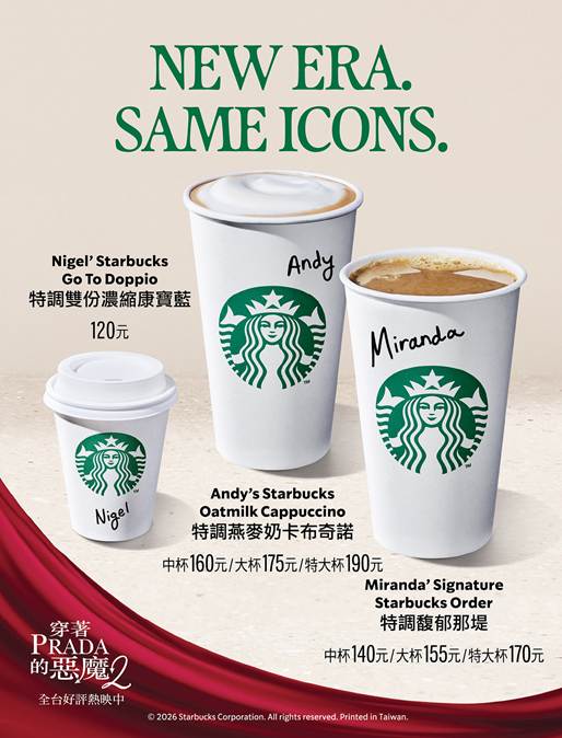 星巴克攜手電影《穿著Prada的惡魔2》(The Devil Wears Prada 2)展開全球合作,該片將於4月29日正式上映。星巴克亦將於4月29日推出三款以電影經典角色為靈感的客製化特調飲品,透過風味設計將電影魅力融入日常咖啡時刻,為顧客帶來兼具時尚風格與品味層次的全新體驗。
