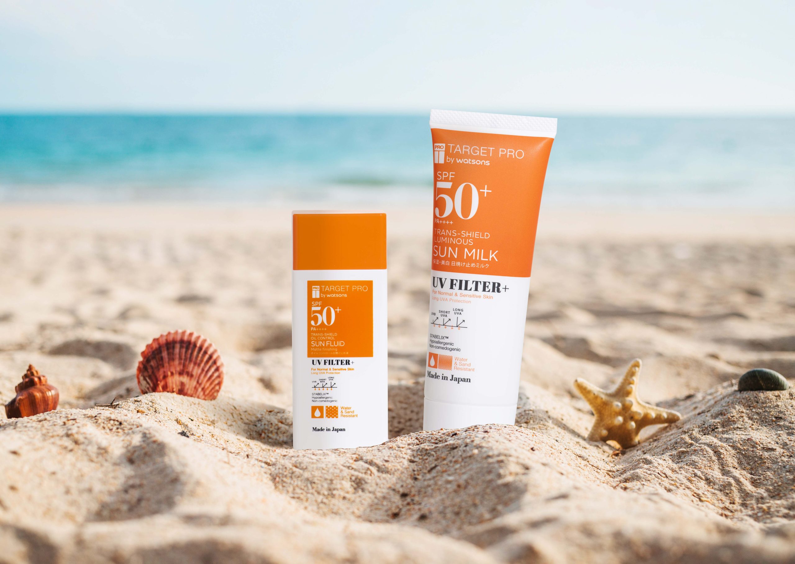 為了提供肌膚更周全的保護,TARGET PRO by Watsons 肌膚專研極效防曬系列導入 UV TRANS-SHIELD TECHNOLOGY 寬頻防曬技術,全方位阻擋紫外線,提供從導致曬紅的 UVB 到穿透力極強、造成深層老化的長波 UVA 的全面防護,搭配 SPF50+ PA++++ 高防護係數,全方位阻擋從曬紅到導致深層老化的紫外線威脅。結合專利「S7ABELIX™7重修護植萃」,以及積雪草、洋甘菊、黃芩等成分穩定肌膚屏障,全天候維持肌膚穩定狀態。