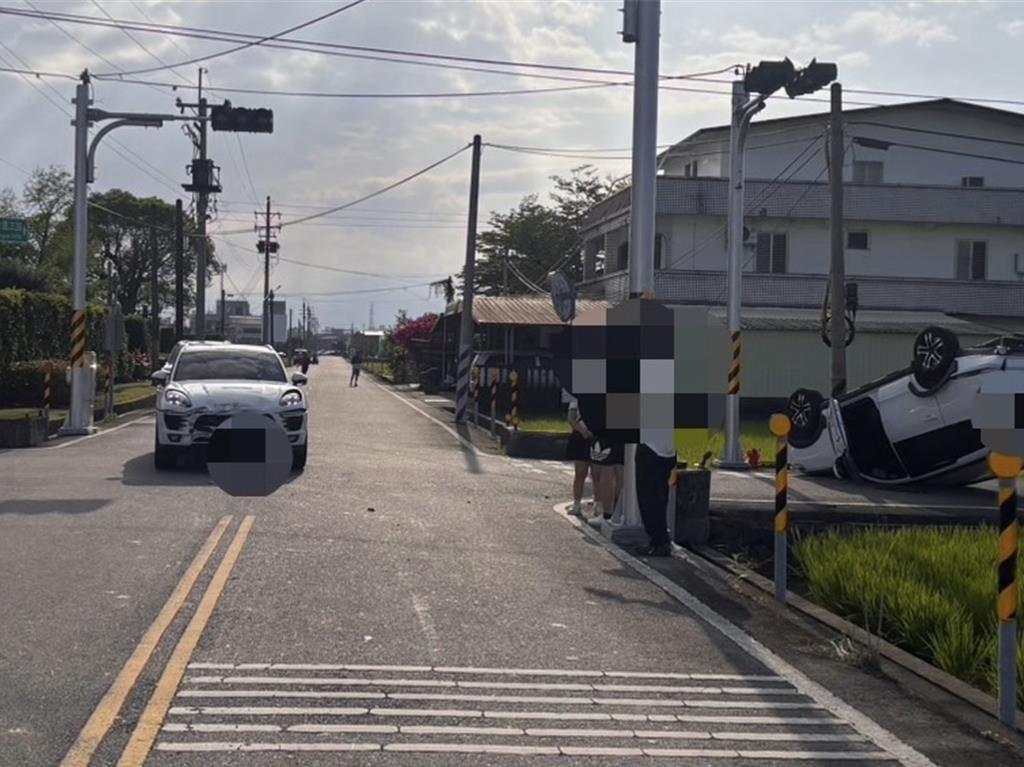 宜蘭五結1處閃燈路口2車相撞 休旅車四輪朝天