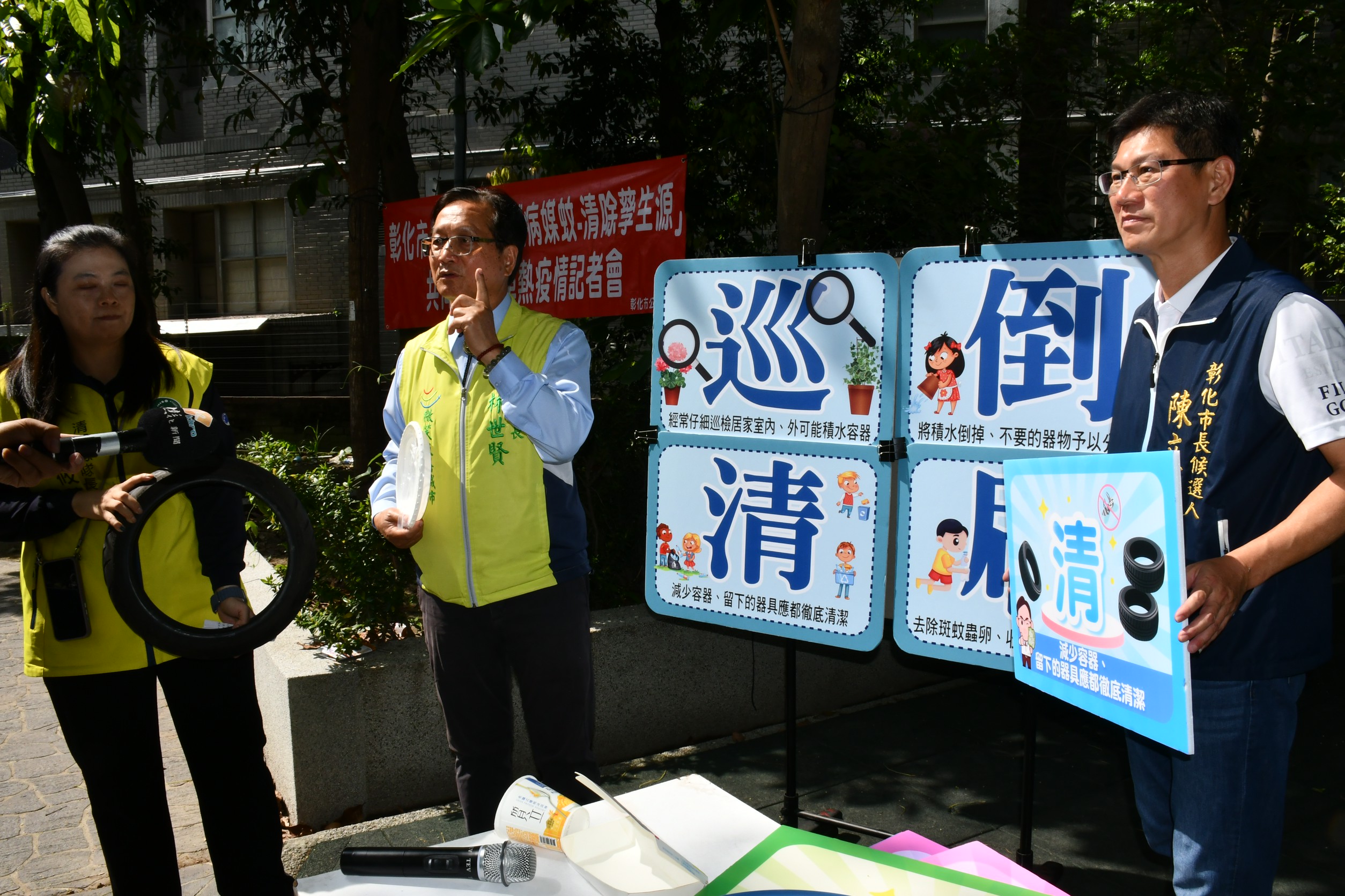 天氣漸漸炎熱,又逢登革熱流行旺季,彰化市長林世賢關心市民健康,二十七日召開登革熱防治誓師記者會,宣布啟動全市防疫總動員機制,呼籲市民一起動起來「消滅病媒蚊,戰勝登革熱」,而為了確實杜絕登革熱病媒蚊孳生源,民眾應從平日做起,落實「巡、倒、清、刷」不讓蚊子幼蟲生長,避免防疫漏洞,並強調自我居家環境檢查與落實環境清理非常重要,唯有如此才能遠離登革熱。
