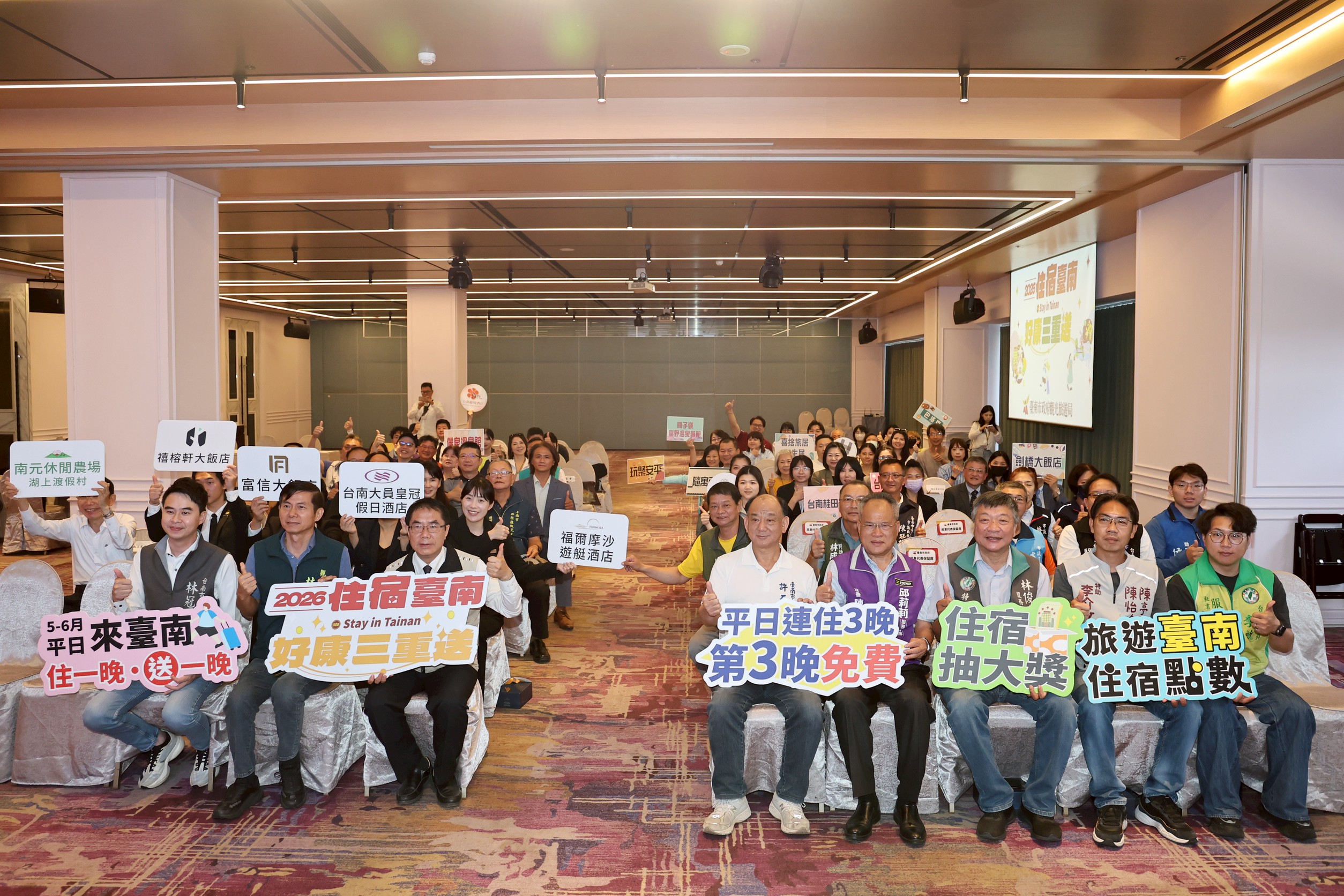 觀旅局和業者攜手,整合住宿優惠、點數折抵及抽獎活動,二十七日舉辦發布記者會。黃偉哲表示,台南是國旅熱門地點,至今年年底,旅宿業房間數已增加近五千間,飯店住宿率不降反升,約一成三,民宿住宿率也顯著提升;此外,去年來台南的海外旅客約達五十九萬人次,較以往增加約十萬人,顯示台南觀光吸引力持續攀升。