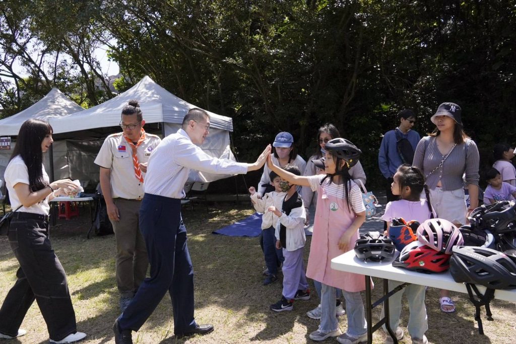活動現場,家長與孩子們在親子合作區開心闖關、彼此打氣,從「水球滾滾」、「瞄準不倒翁」到「老地名猜謎」與「粉筆彩繪」,一路集章、樂趣不斷。其中「斥候工程」最受歡迎,孩子在繩橋與設施間挑戰自我,在加油聲中克服緊張、成功過關,開心分享成果,成就感滿滿。