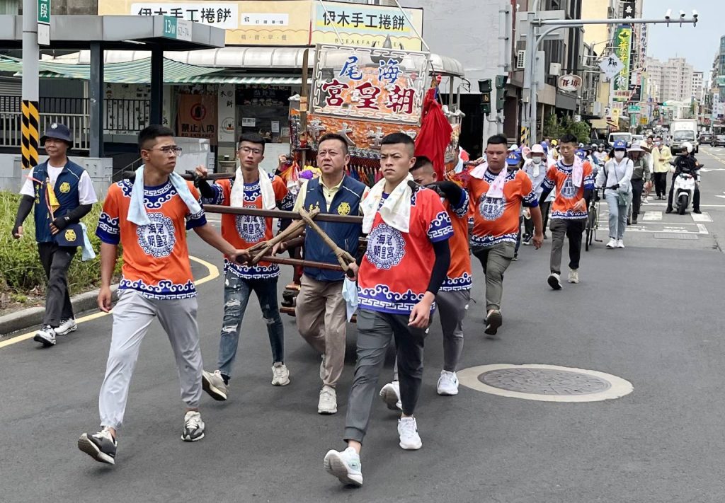 海尾朝皇宮赴下大道良皇宮謁祖進香。(記者陳治交攝)
