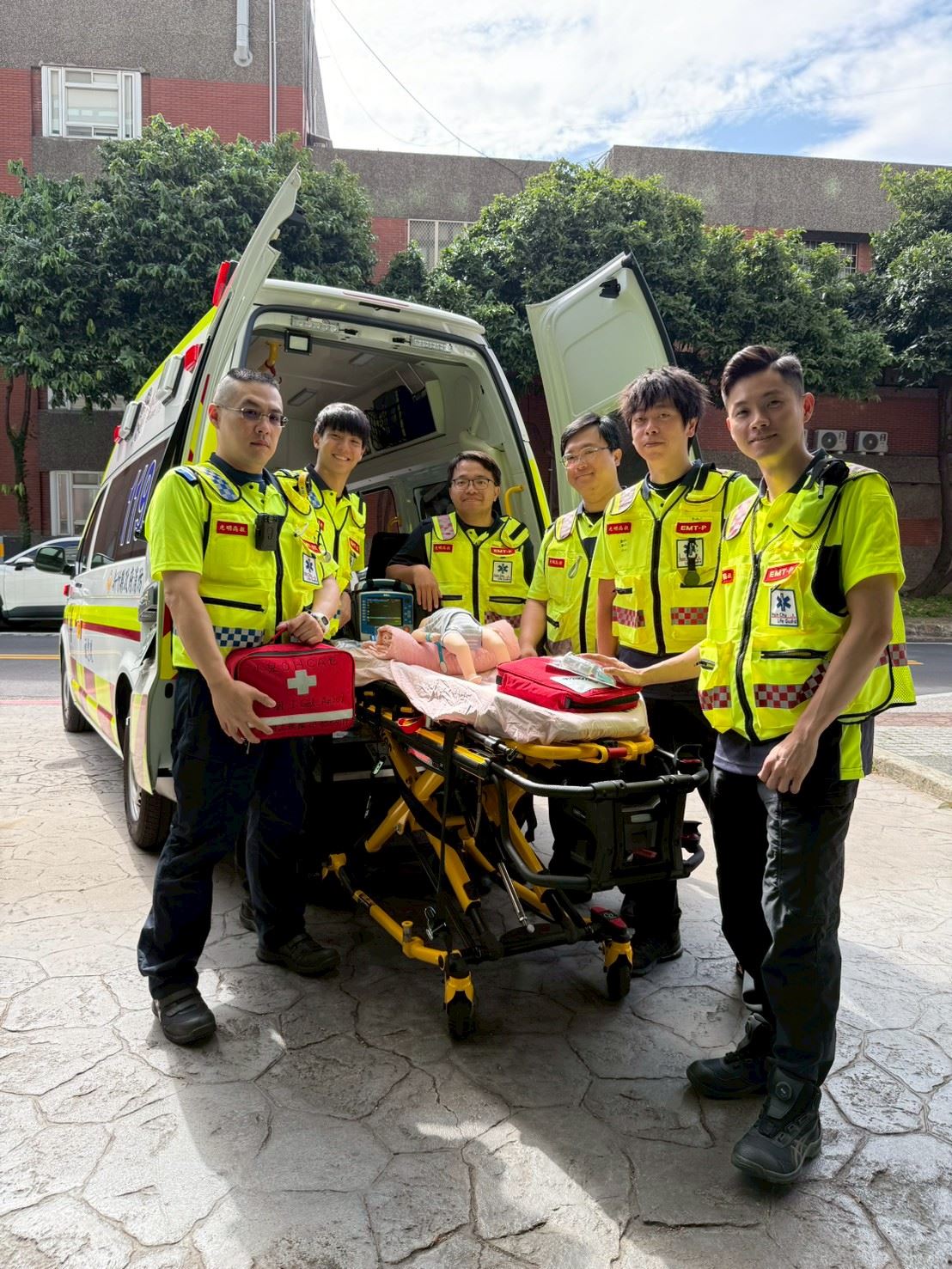 光明高級救護分隊高級救護技術員賴俊傑表示,救護人員抵達時,女嬰臉色仍呈現發紺,無呼吸無意識的狀態,現場立即接手急救,迅速建立進階呼吸道、給予高濃度氧氣,並持續實施CPR。約二分鐘後,正準備建立骨針、給予急救藥物時,發現女嬰出現明顯自主呼吸,成功恢復生命徵象,讓現場所有人都鬆了一口氣。