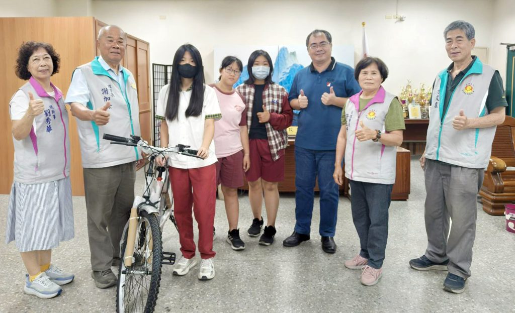 另一名一年級女學生因家庭狀況影響,原有腳踏車時常故障、脫鏈,無力修繕,造成通學不便。太陽慈善會理事長謝加榮得知後,自掏腰包捐贈一台全新變速腳踏車,協助學生安心上下學。