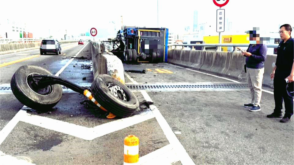 因事故地點未設置監視器,無法還原事發經過,消、警研判大貨車疑似自撞匝道口水泥護欄後,隨後引發車輛起火,陳姓司機(24歲)疑因翻車受困車內火焚身亡。