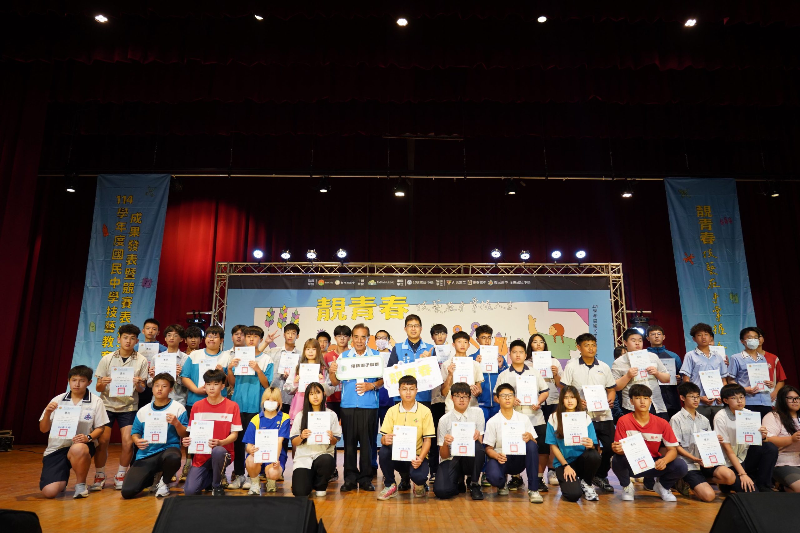 新竹縣一一四學年度國中技藝教育課程技藝競賽頒獎典禮,廿九日在縣府大禮堂熱鬧登場。今年以「靚青春 技藝在手,掌握人生」為主題,頒獎表揚全縣十四個職種中脫穎而出的二百九十三位優秀學子,展現新竹縣推動技藝向下扎根、適性揚才的亮眼成效。
