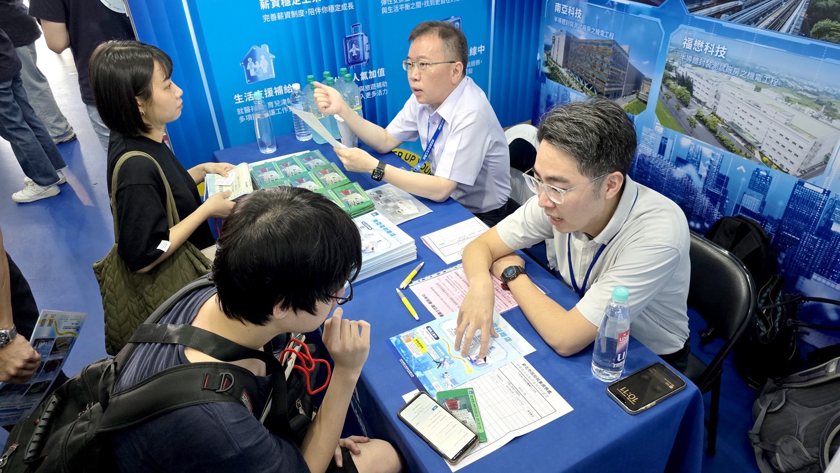 本場就博會吸引各界求職者,來自工管系的在校學生鎖定胡連精密、兆利科技等企業投遞履歷,對於未來已有許多藍圖,盼投入高階精密零件的品管經營領域;現場更有來自東吳資工系的畢業生跨校參與,期盼透過活動能轉職到緯創資通。