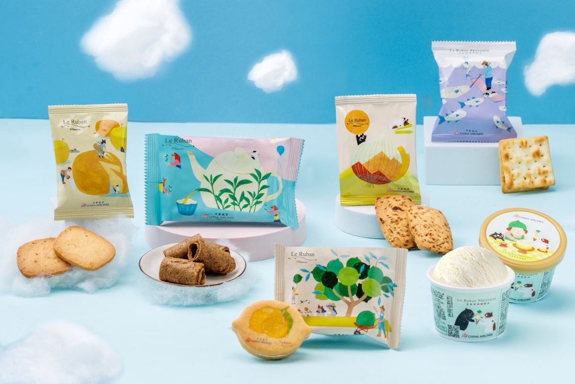 華航表示,法朋也為華航設計專屬甜點包裝,特別邀請台灣繪本作家陳又凌以細膩筆觸與溫暖色彩,將繽紛食趣化為插畫元素,呈現鮮活故事;包裝材料則選用環境友善材質,兼顧美感與實用性。華航持續透過餐飲推行在地食材及環保永續,以多元美食風貌滿足旅客。