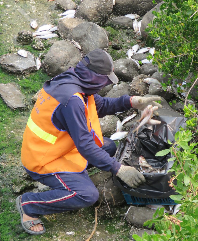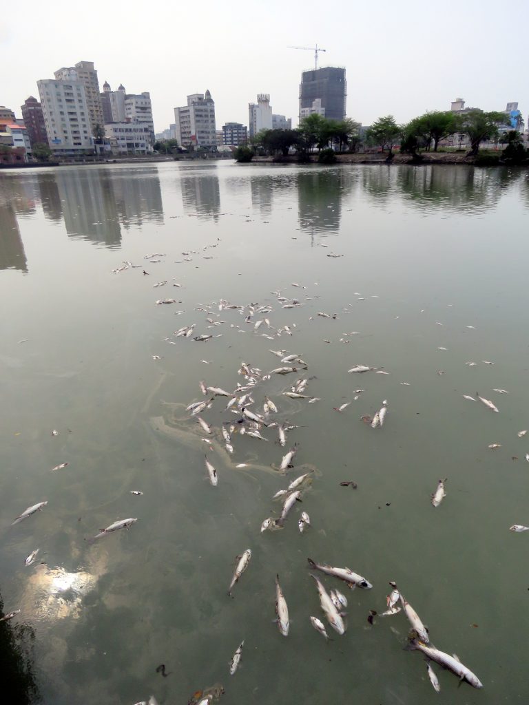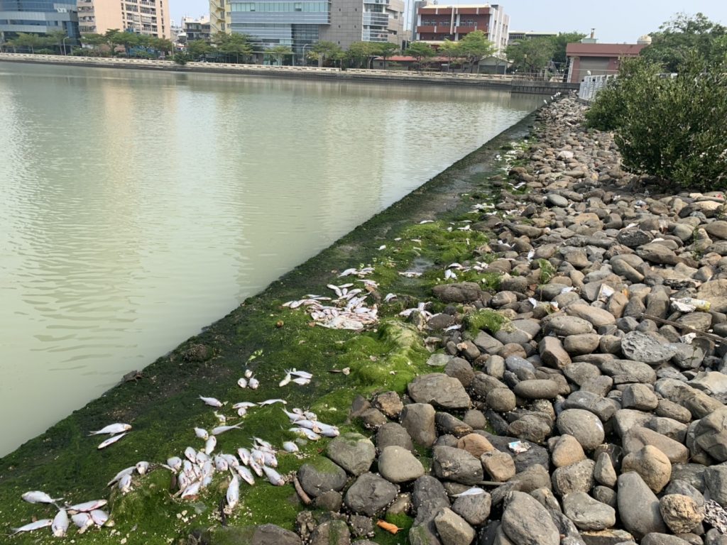 台南運河新臨安橋至永華橋段三日傳出魚群暴斃、翻白肚漂浮水面,環保局共打撈清除約一公噸死魚,抽水檢測初步研判係因水中溶氧偏低,造成魚群缺氧窒息死亡。
