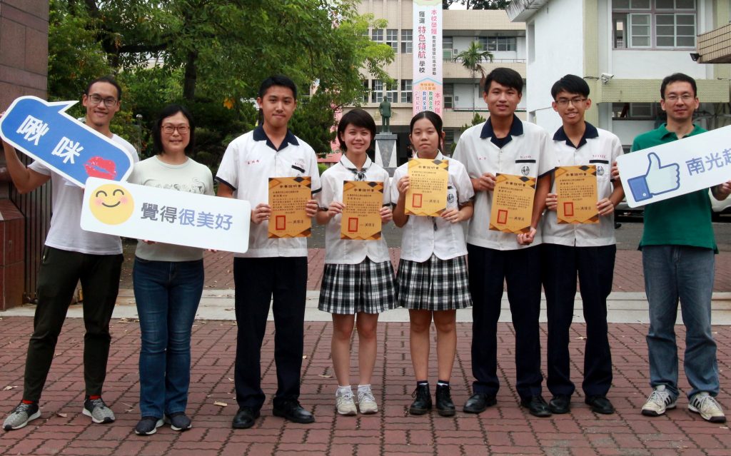 南光高中學生曾翊瑄、沈思岑、蘇翊喬、黃承宇、游承叡五人組隊,參加全國高中物理探究與實作競賽,獲得「全國銅獎」的殊榮。