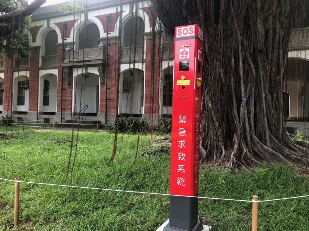 成功大學與佳世達旗下的明基逐鹿公司合作,首創將AI人工智慧技術運用至校園安全作業,並整合校區公共空間監視錄影、緊急通報系統及駐警隊,建置智慧化的校園安全作業研究中心。另外還增設十八座SOS緊急求救亭,可迅速連線到作業中心,突發狀況的到場時間可從十分鐘縮短至三分鐘。