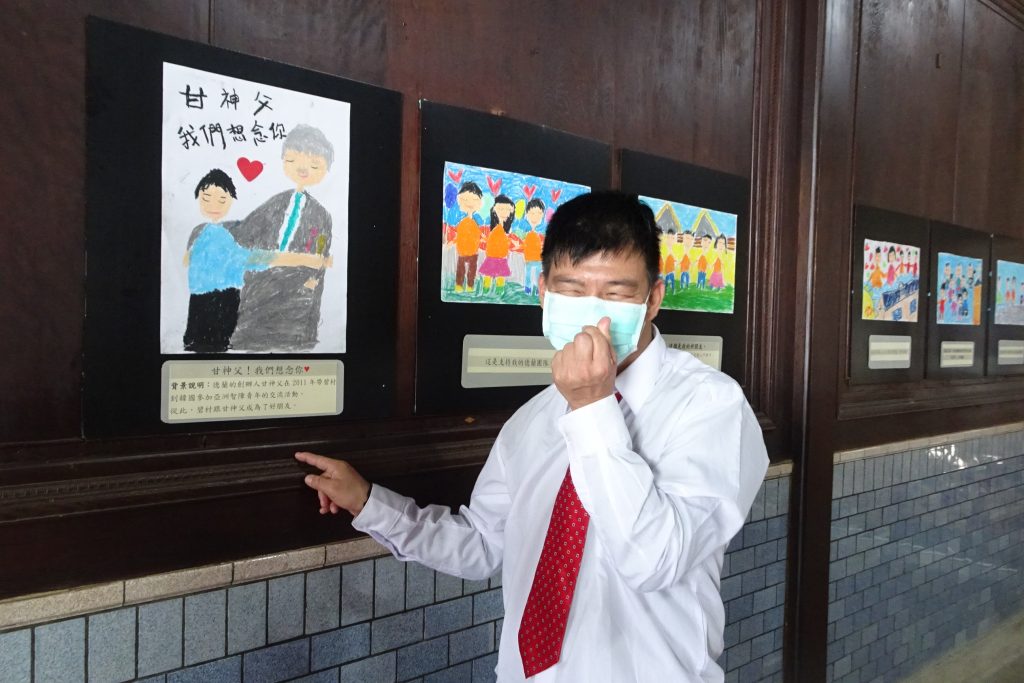 「雖然手不穩但愛畫畫,雖然說不出話卻熱愛樂器…」,這是德蘭的孩子簡碧村,他選擇在新設的山上照陽幸福小站舉辦畫展,畫出他的聖母媽媽、他愛的甘神父及他的好朋友們。他用手比出愛心,用肢體語言傳達心情,讓大家看見幸福和愛。