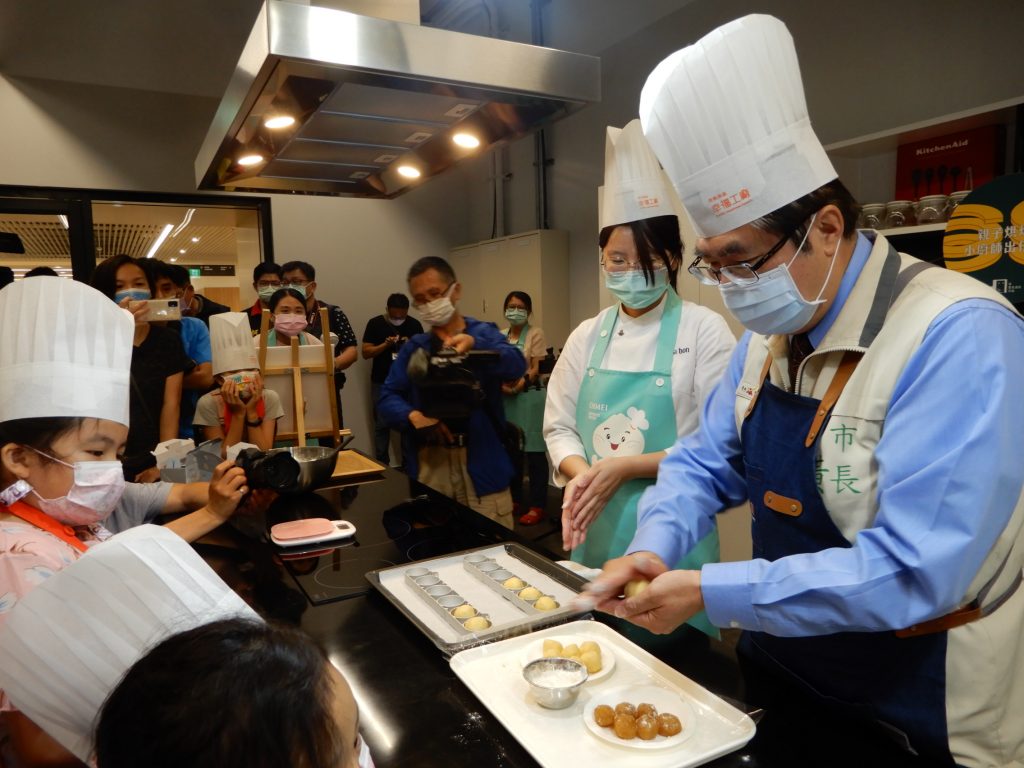圖書館裡竟然香氣陣陣!配合兒童樂讀月活動,市長黃偉哲二日化身為「阿哲師」在市圖新總館內的「城市灶咖」擔任烘焙師,教大家如何製作美味鳳梨酥。黃偉哲鼓勵民眾前來,共同來進行五感體驗。