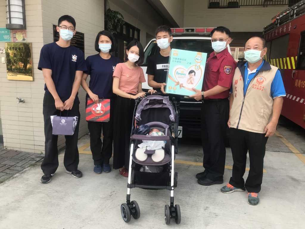 昨日莊女與黃姓夫婿帶著剛滿月的兒子,及禮品到關廟消防分隊,感謝救護人員的協助,母子均安。消防局也回贈尿布等物品,祝福子恩健康長大,南市消防之友會第五辦事處處長薛文祥也特地到場頒發救護獎勵金,並恭喜黃姓夫婦。