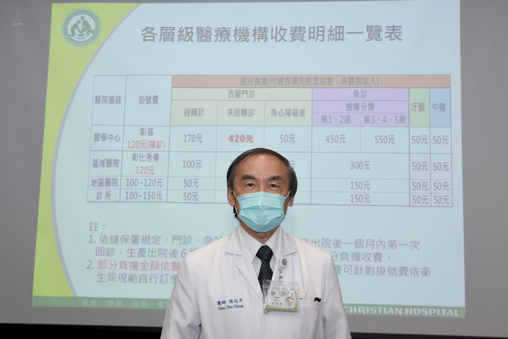 彰基醫學中心發言人周志中醫師表示,台灣醫療院所按照衛生福利部分類,目前分為「醫學中心」、「區域醫院」、「地區醫院」及「基層診所」等四級,共計有廿三家「醫學中心」醫院、三家「準醫學中心」級醫院;彰化縣則有一○三二家診所,卅一家醫院,彰基是彰化、南投、雲林、嘉義四縣市唯一的「醫學中心。