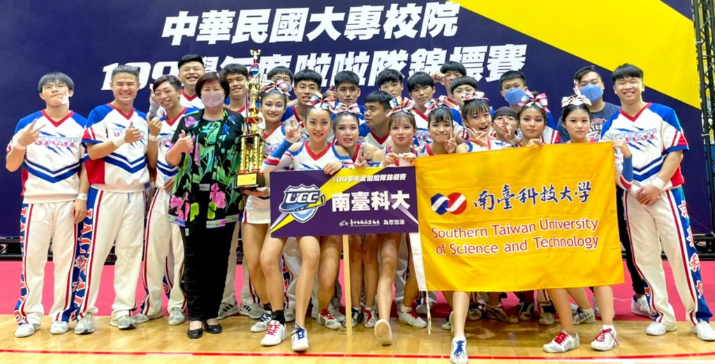 大專校院啦啦隊競賽種類包含競技、舞蹈啦啦隊兩種賽制,其中競技啦啦隊項目分為七項,南台報名其中三項,分別為一般男女混合團體組、一般女生五人組及一般男女混合五人組,南台競技啦啦隊展現了選手的自信、樂觀、自我激勵及團隊精神,參加組別包括單、多底層及金字塔等技巧精湛,均獲得亮眼成績。