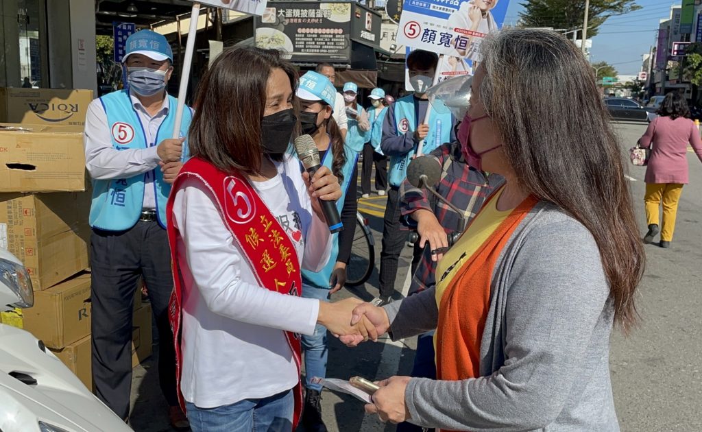 高金素梅昨上午在沙鹿市場另一頭掃街,沿途用閩南語和攤商與民眾問候拜票,有支持者和粉絲認出她跑上前要合影,高金素梅親切問候攤商生意,向大家說加油辛苦了,她也不斷喊著「我是阿梅,請支持顏寬恒」。