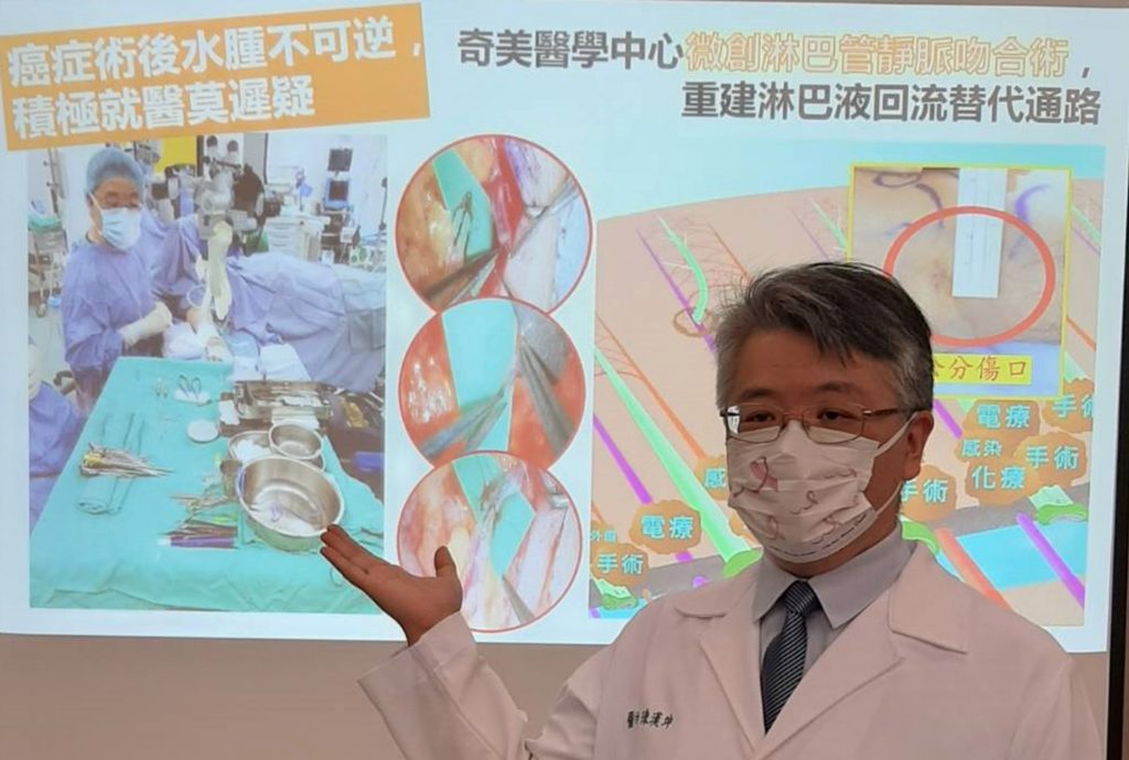 奇美醫一般及消化系外科主治醫師陳漢坤表示,癌症手術除切除惡性腫瘤,為防止癌細胞經由淋巴系統擴散,術中也會切除附近淋巴結。一些特別的癌症,例如乳癌、婦科癌症、黑色素瘤、惡性肉瘤、攝護腺癌及頭頸部癌等,術後會引起患側淋巴水腫後遺症。另,如果癌症引發淋巴轉移嚴重到影響淋巴系統原先功能,部分病人也會有淋巴水腫問題。